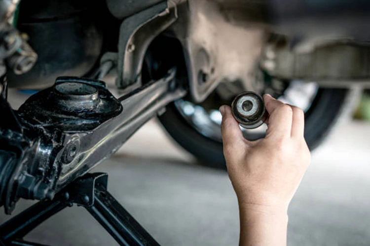 4.Delikatnie podważ wahacz w pobliżu tulei za pomocą podważacza — ruch większy niż 3 mm (≈1/8 cala) zwykle wskazuje na zużycie.