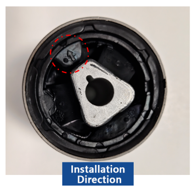 Podczas montażu należy upewnić się, że pełna (niedzielona) część tulei jest wyrównana z poziomym kierunkiem jazdy pojazdu do przodu. Jeżeli tuleja posiada strzałkę orientacyjną, strzałka ta musi być skierowana do przodu, w kierunku jazdy.